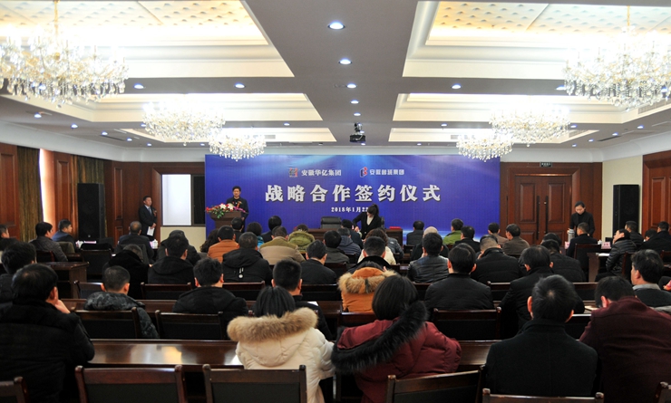 2018年1月22日上午,華億集團、魯班集團戰(zhàn)略合作簽約儀式在南陵大浦綠洲魯班集團總部舉行。華億集團董事長項義水、魯班集團董事局主席汪錫文分別代表雙方在合作文本上簽字。