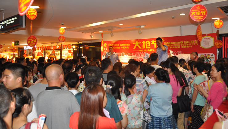 當大多數消費者收獲滿滿,走出華億國際購物中心時,“大搶節”的重頭戲——搶iPhone6和電動車的活動才剛剛開始。