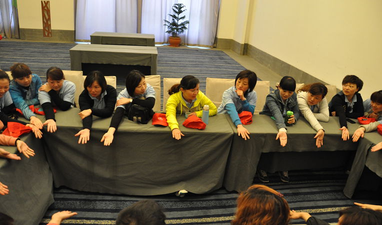 “領袖風采”——這是一個“折騰人”的項目,起初教練組認為執(zhí)行中可能存在“風險”,然而經(jīng)過教練員與“隊長”、“隊秘”長達10多分鐘的溝通后,4組學員相繼完成,評估顯示很多學員受益于此項目。